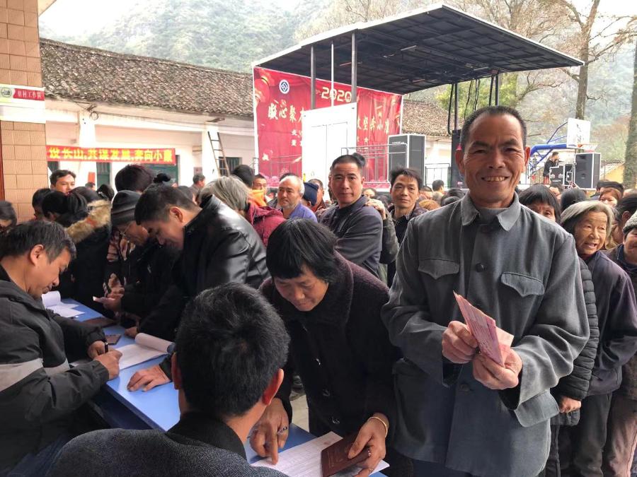長(zhǎng)山村集體經(jīng)濟(jì)收益分紅大會(huì)上,村民們正排隊(duì)領(lǐng)分紅